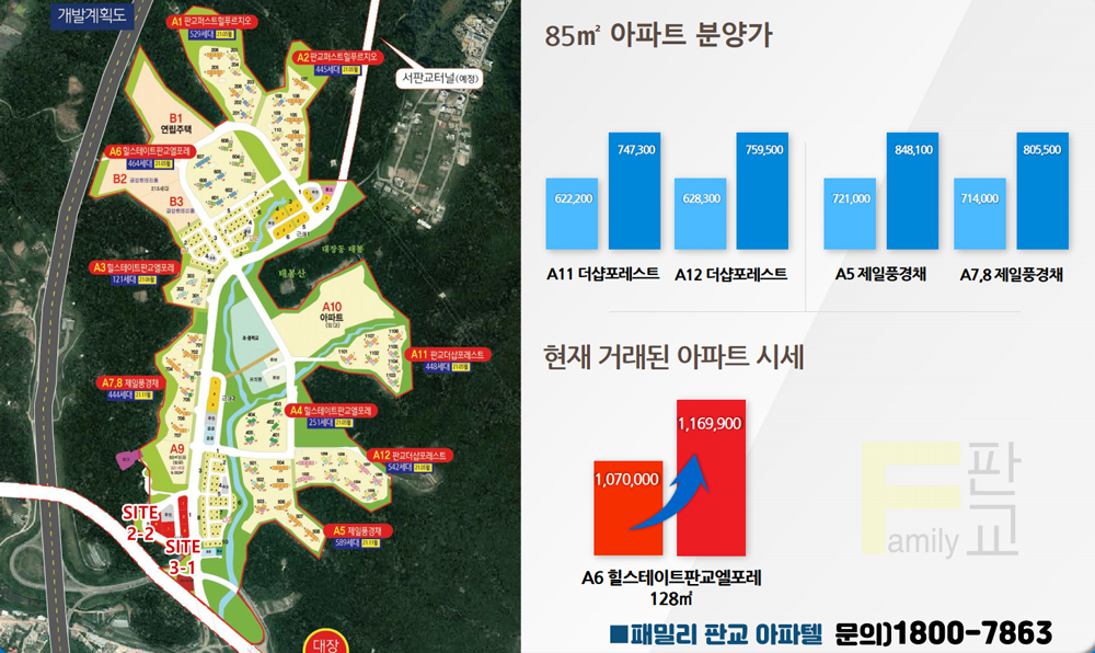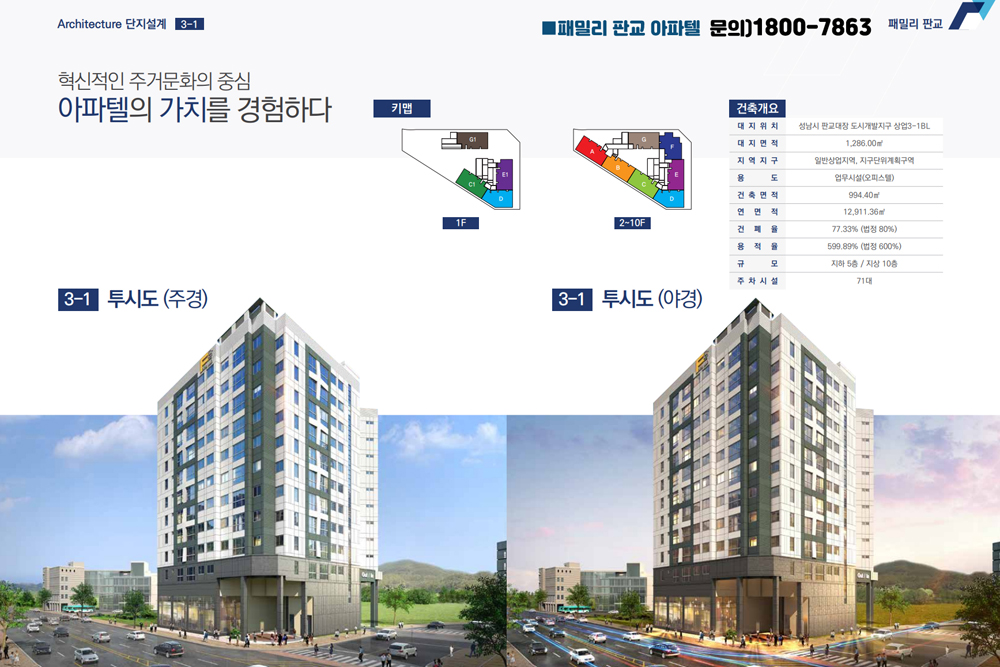 주변 전세시세보다 저렴한 분양가(판교 대장지구 84타입 현 전세시세는 8억~10억대)패밀리판교 아파텔 분양가는 7억대(층별로 위치별로 상이합니다)