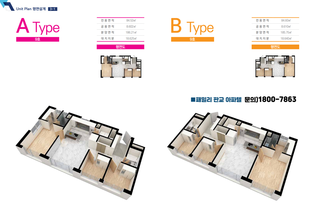 - 저렴한 분양가 : 판교 대장지구내 유일한 85m2 아파텔