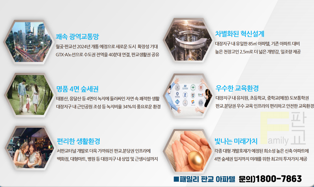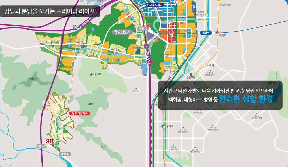 - 편리한 생활권 : 서판교터널 개발과 백화점,대형마트,병원등 인프라